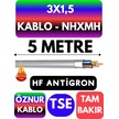 Öznur 3x1,5 Nhxmh Alev İletmez Kablo Metre Seçenekli Gri - 5 Metre