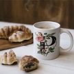 P Baş Harf Kırmızı Güller İle Sarılı Bardak 330 Ml Kişiye Özel Çiçekli Hediye Beyaz