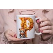 P Harf Sonbahar Yaprak Temalı Kupa Bardak - Sevimli Figürler İle Alfabe Harfli Bardak - Kişiye Özel Beyaz