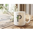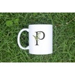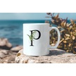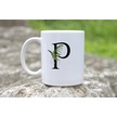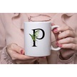 P Harf Zarif Yaprak Desenli Kupa Bardak - Naturel Sade Alfabe Harfli Bardak - Kişiye Özel Hediye Beyaz