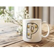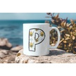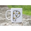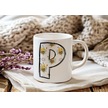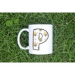 P Harfi Arı Desenli Kupa - Sevimli Hayvan Temalı Kişiye Özel Kahve Kupası - Şans Kupası Beyaz