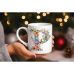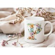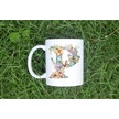 P Harfi Çiçekli Kupa Bardak - Soft Renk Çiçek Ve Kelebek Desenli Zarif Kahve Kupası - Bohem Beyaz