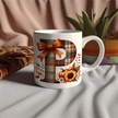 P Harfi Ekose Ve Sonbahar Temalı Kupa Bardak - Kişiye Özel Sıcak Tonlar Alfabe Kupa - Hediye Beyaz