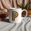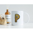 P Harfi Gold Simli Kupa Işıltılı Alfabe Harf Tasarımlı Kahve Kupası - Kişiye Özel Hediye Beyaz