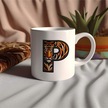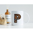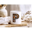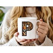 P Harfi Kaplan Figürlü Nakış Desenli Kupa Bardak - Kişiye Özel Vahşi Hayvan Desenli Kupa - Hediye Beyaz