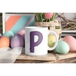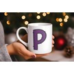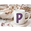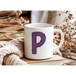 P Harfi Mor Puantiyeli Kupa Bardak - Polka Dot Tasarım Kahve Çay Bardak - Kişiye Özel Hediyelik Beyaz