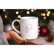 P Harfi Pembe Çiçek Desenli Kupa Bardak - Zarif Pembe Çiçek Tasarım Kahve Çay Kupası - Hediye Beyaz