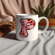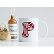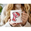 P Harfi Pembe Kareli Kalpli Göz Emojili Kupa Bardak Eğlenceli Kareli Tasarım Kahve Çay Kupası 07 Beyaz