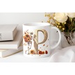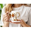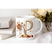 P Harfi Pembe Kareli Kalpli Göz Emojili Kupa Bardak Eğlenceli Kareli Tasarım Kahve Çay Kupası Beyaz