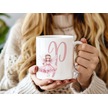 P Harfi Pembe Peri Kızı Figürlü Kupa Bardak Masalsı Çay Kahve Kupası - Kişiye Özel Hediye Beyaz