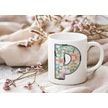 P Harfli Pastel Çiçek Desenli Kahve Kupası - Kişiye Özel Çiçekler Koleksiyonu Bardak - Hediye Beyaz