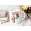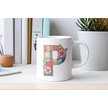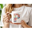 P Harfli Retro Çiçekli Kupa Bardak - Patchwork Tarz Yamalı Desenli İsme Özel Kupa - Hediye 07 Beyaz
