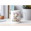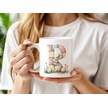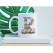 P Harfli Tavşan Kupa - Patchwork / Yamalı Desenli İsme Özel Kupa - Pastel Vintage Tarz Hediyelik 07 Beyaz