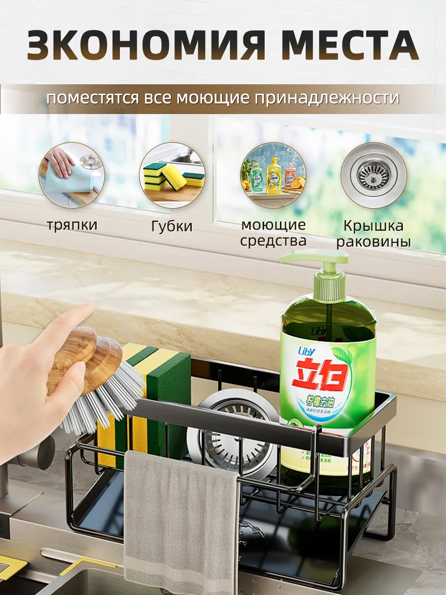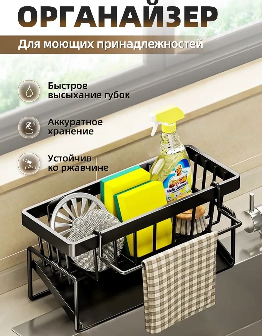 Pabk Mutfak İçin Sünger Ve Deterjan Düzenleyici Askı 334550257 Siyah