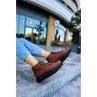 Pabucmarketi Bağcıklı Kadın Sneaker Bot Taba Taba