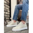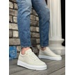 Pabucmarketi Bağcıklı Keten Erkek Ayakkabı Krem Beyaz Taban Çok Renkli
