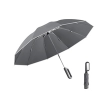 Padalink 10 Kasnaklı Otomatik Ters Katlanır Şemsiye - 280t Kumaş, Rüzgar Dayanıklı, Işık Yansıtan Şeritli, Portatif Siyah