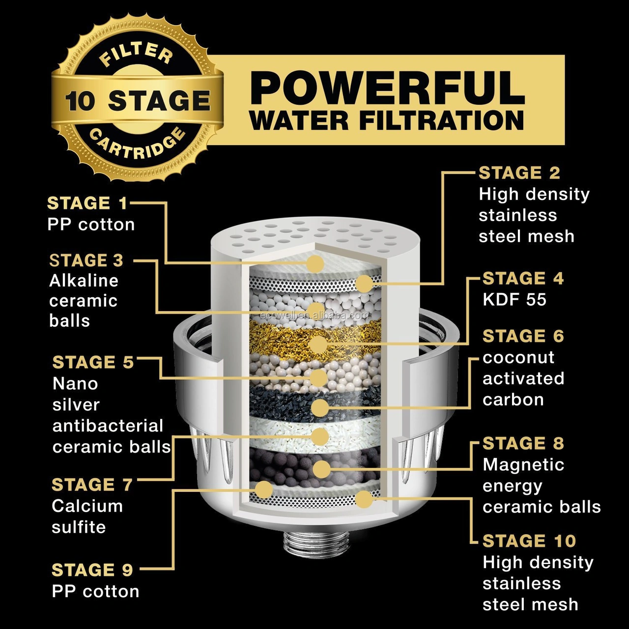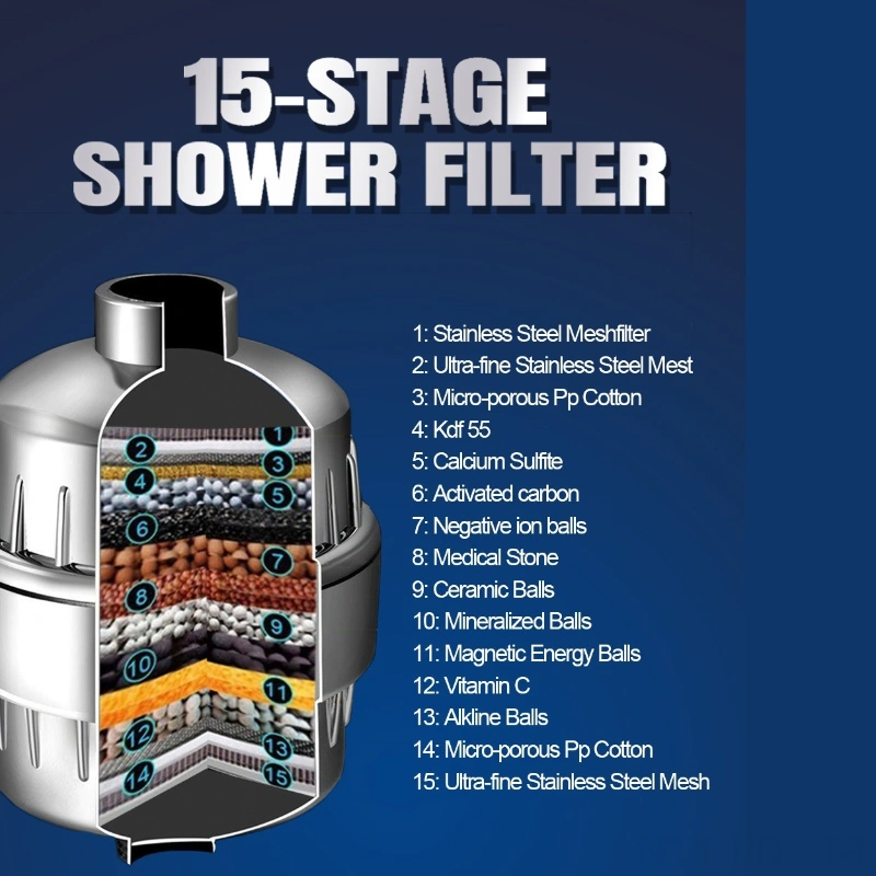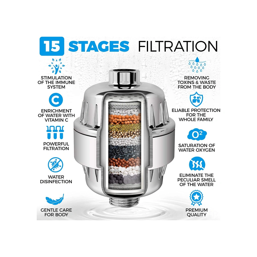 Padalink Dus Filtresi Aktiv Karbonlu Kdf+kalsiyum Sulfit+vitamin C 10-15 Aşamalı Su Temizleyici Krom, Beyaz, Gümüş Diğer
