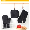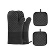 Padalink Ev Fırını Ve Mikrodalga İçin 30cm Silikonlu Isıya Dayanıklı Eldivenler, Antir Kayma Kumaş, Siyah Kare Desenli 4'lü Set