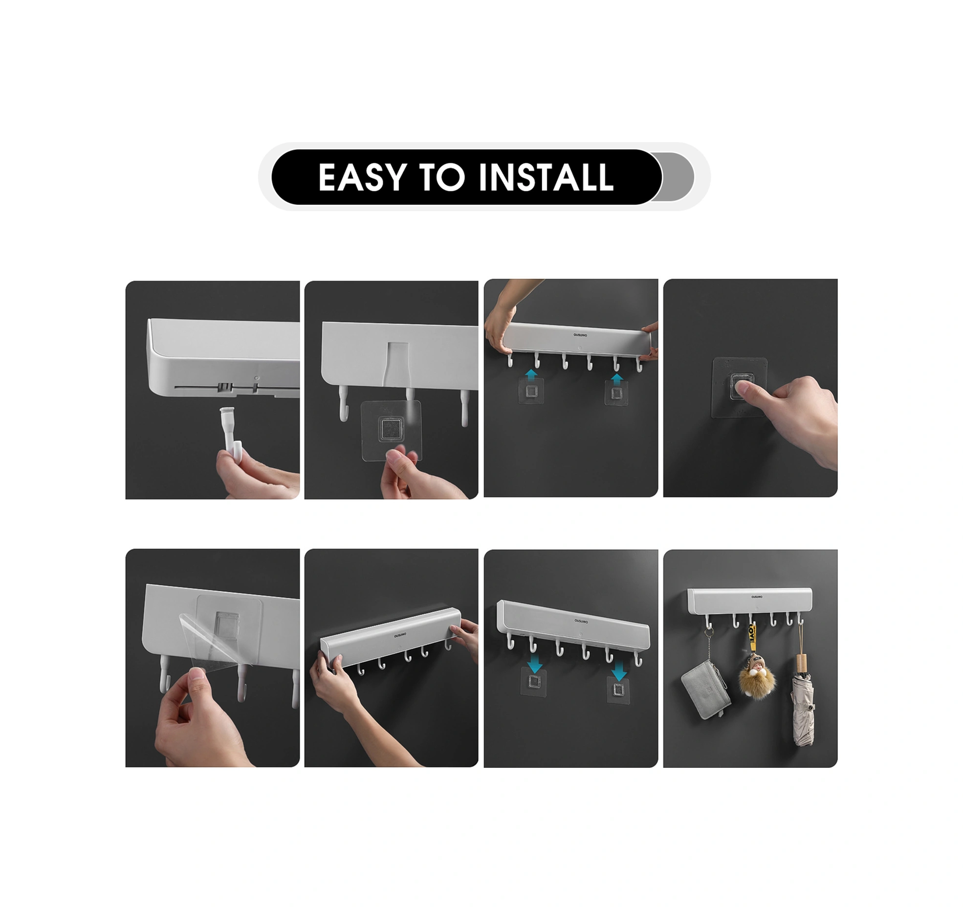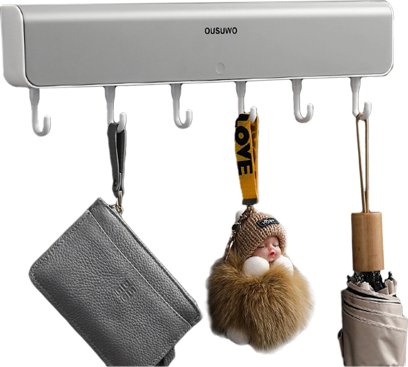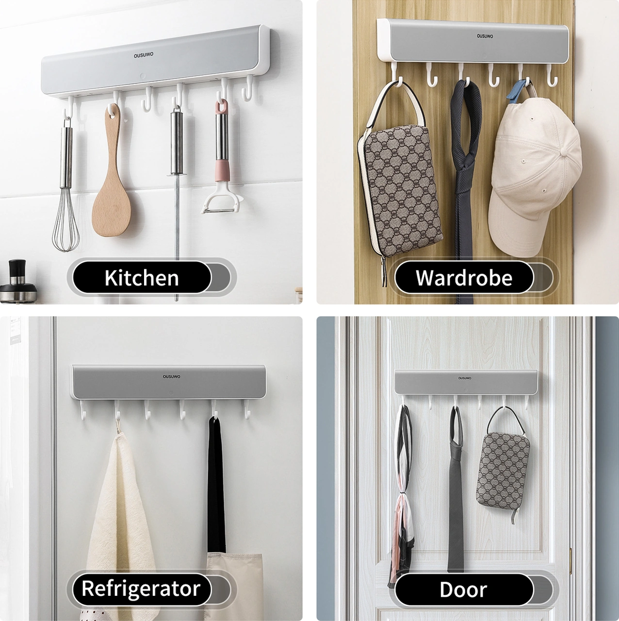 Padalink Gri Abss 6 Kanca Ve 4 Bölmeli Sürekli Taşınabilir Dürtme Açılır Duvar Takımı - 5kg Yük Dayanımı, Ev/ofis/okul Depolama Gri