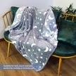 Padalink Gri Ay Desenli Parlak Flanel Battaniye - Işık Veren Çocuk Uyku Battaniyesi, Konforlu Isı Sağlar, 1x1.5m Kutulu Paket Gri