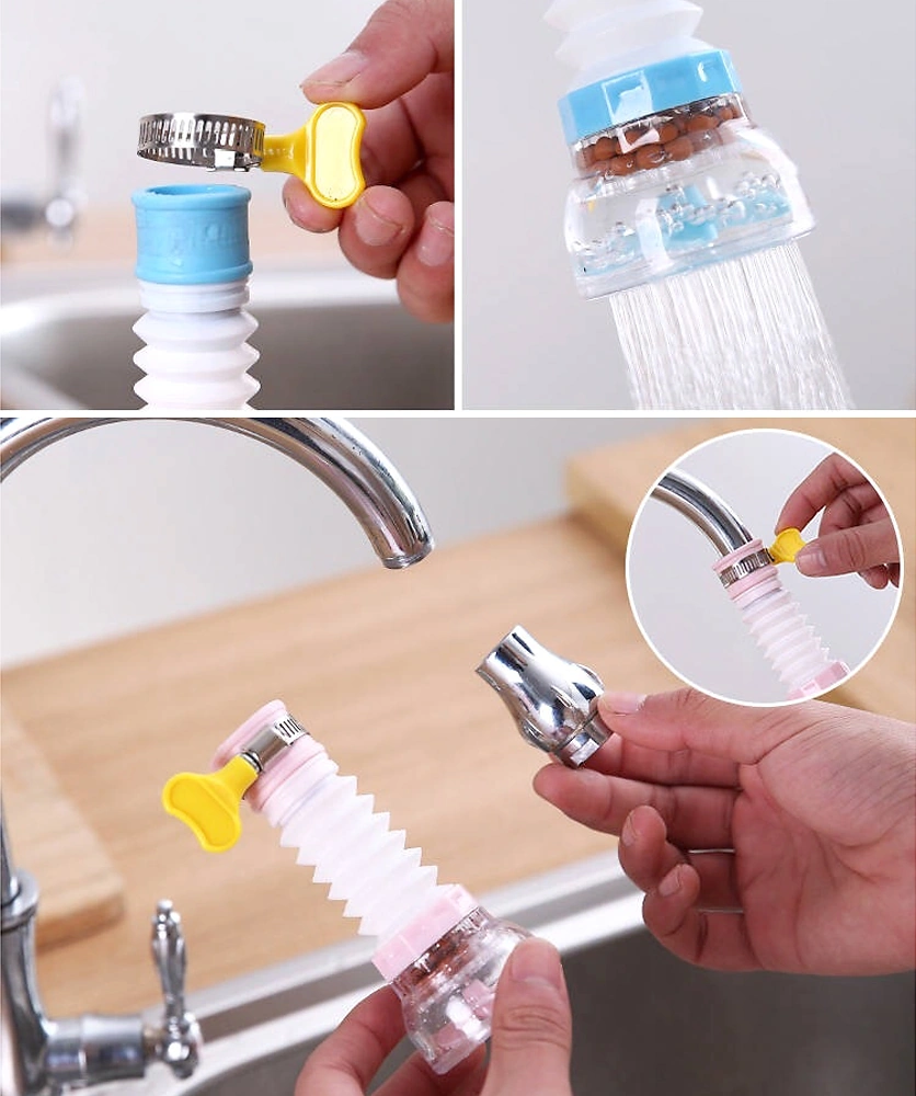 Padalink Mutfak Musluk Uzatma Aleti 360 Döner Anti-splash Filtreli Su Tasarrufu Cihazı 4. Nesil Mefit Su İçeriği Mavi Renkli Mavi