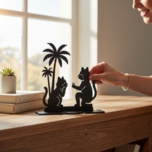 Palmiye Ve Kedi Figürlü Metal Dekor Masaüstü Silüet Obje