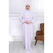 Pamuk Başörtülü Tek Parça Namaz Elbisesi - Mor Çiçekli Beyaz - Mor