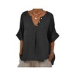Pamuk Keten Kadın Gömlek V Yaka Düğmeli Yarım Patlet Yarım Kol Nefes Alabilir Bol Siyah