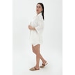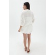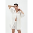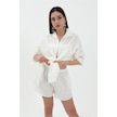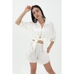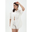 Pamuk Keten Şort Gömlek Kadın İkili Takım - Ekru-ekru Ekru