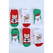 Pamuklu 6'lı Yılbaşı Noel Baba Kışlık Havlu Yenidoğan Bebek Çorap "Karışık Renkli"