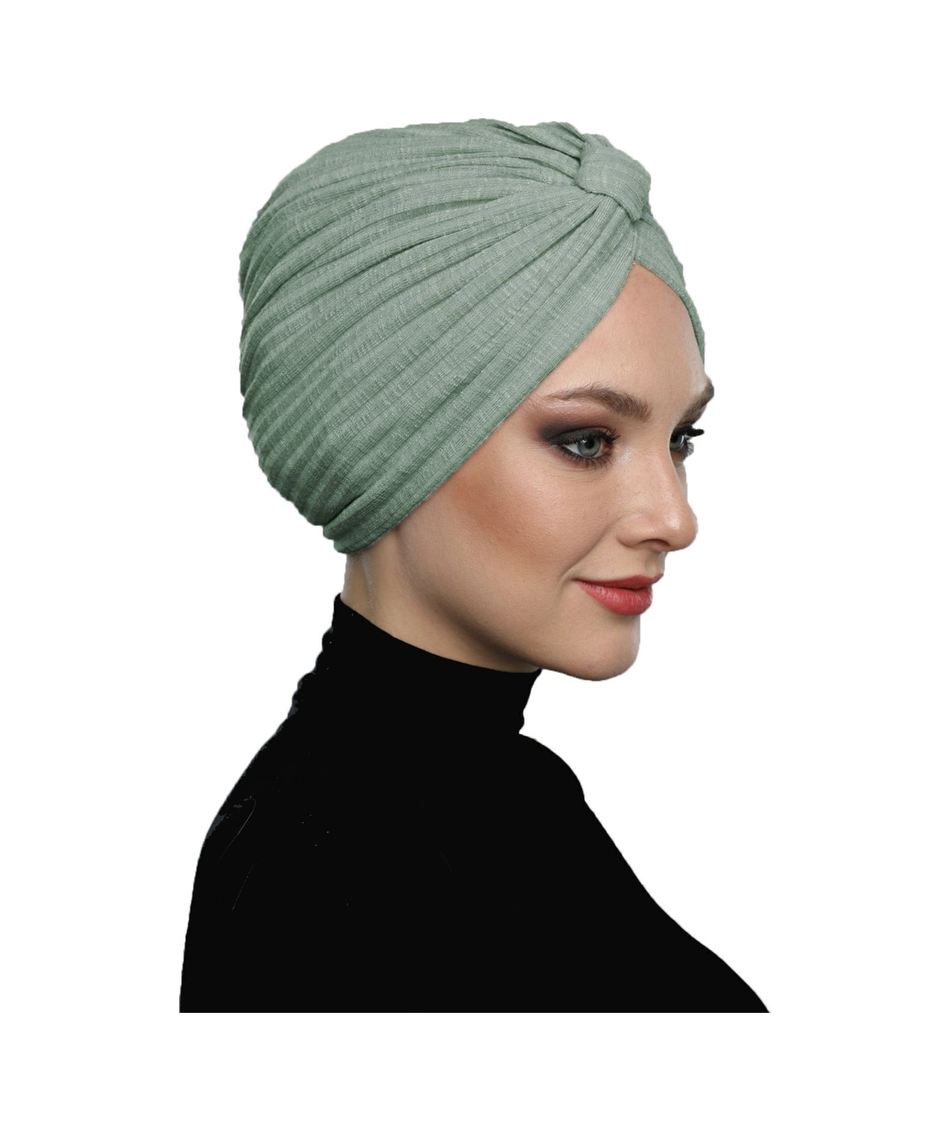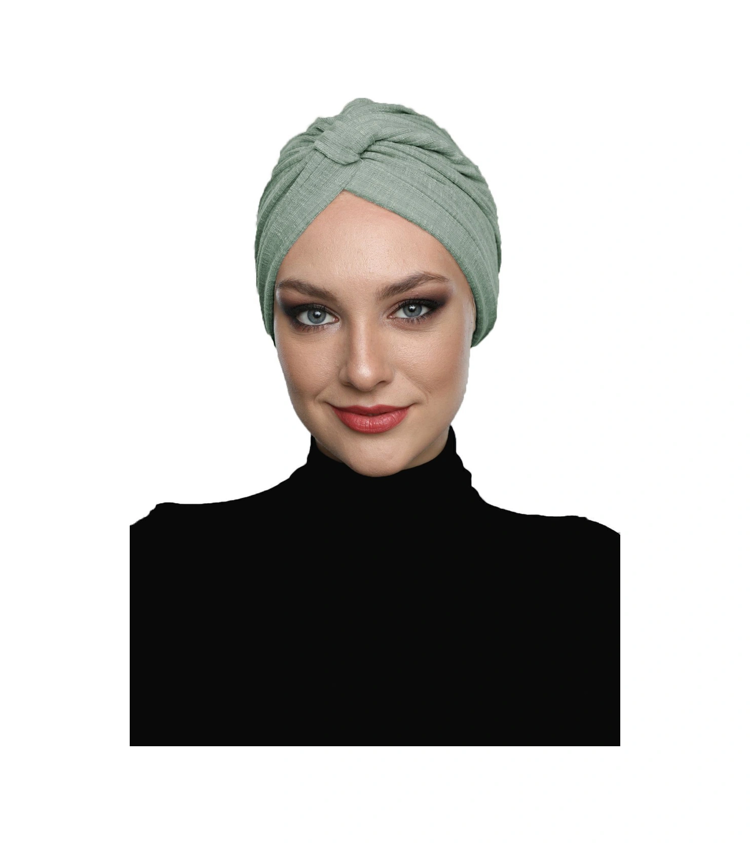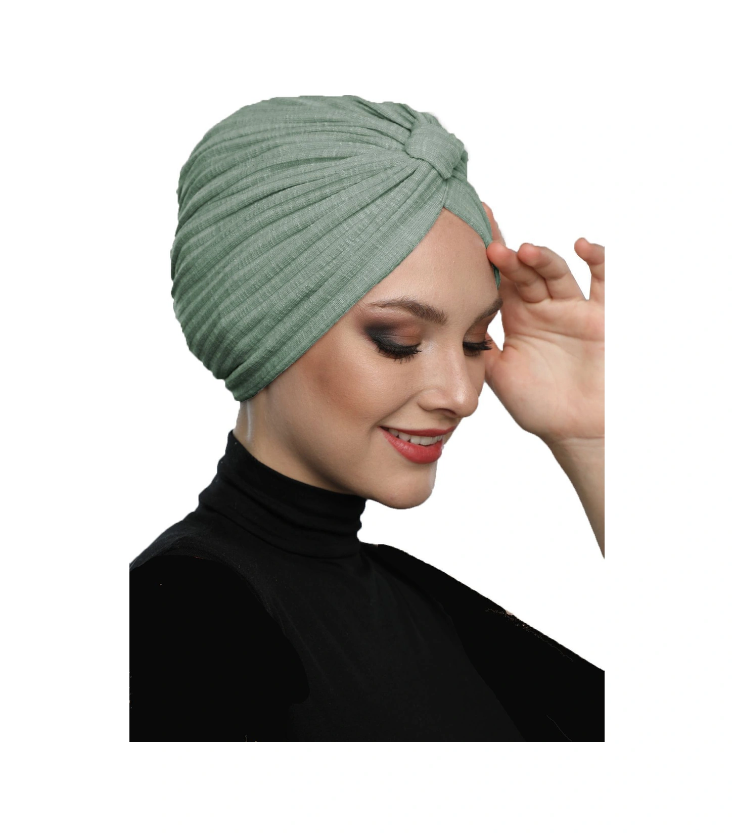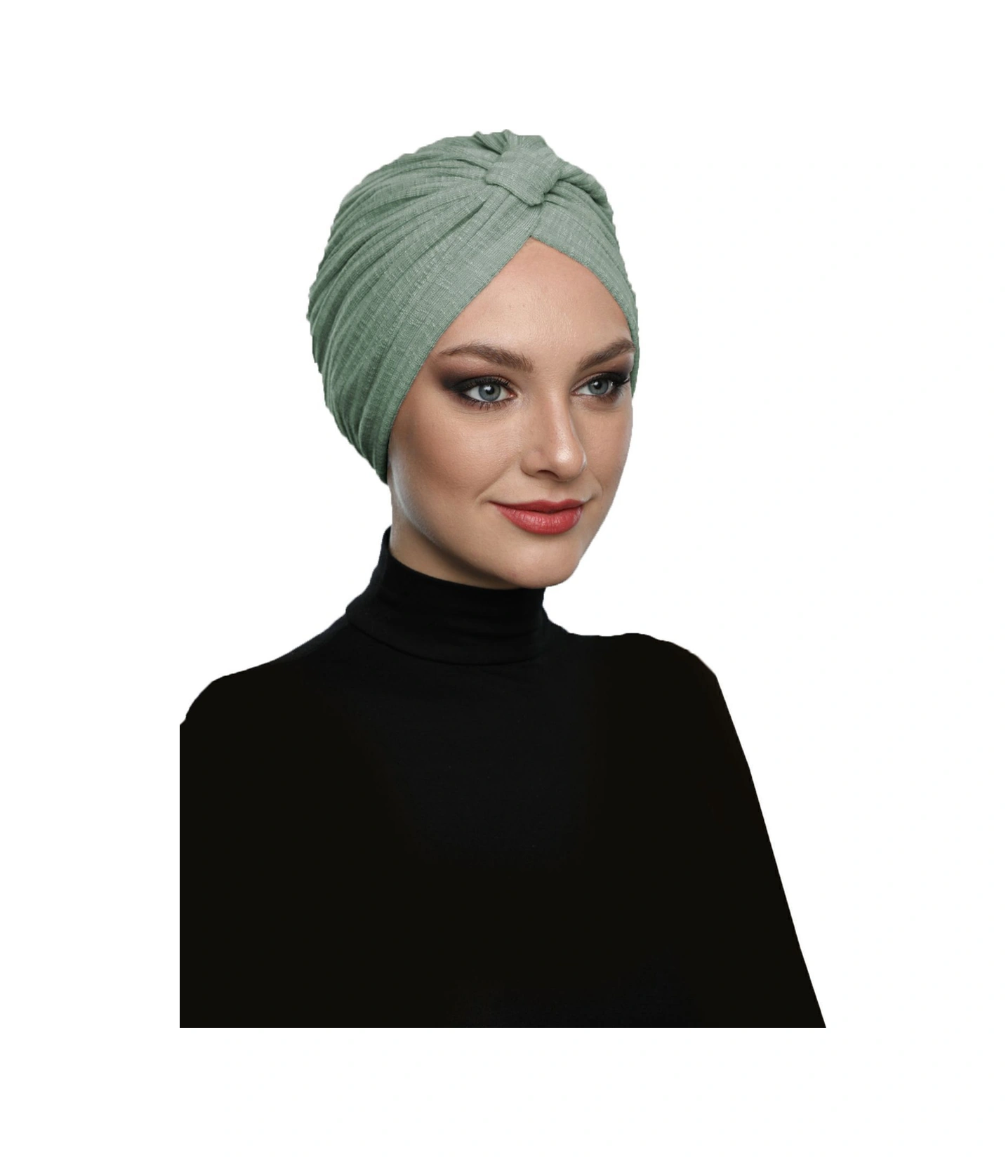 Pamuklu Bantlı Astarlı Su Yeşili Hazır Türban Tesettür Havuz Bonesi Su Yeşili