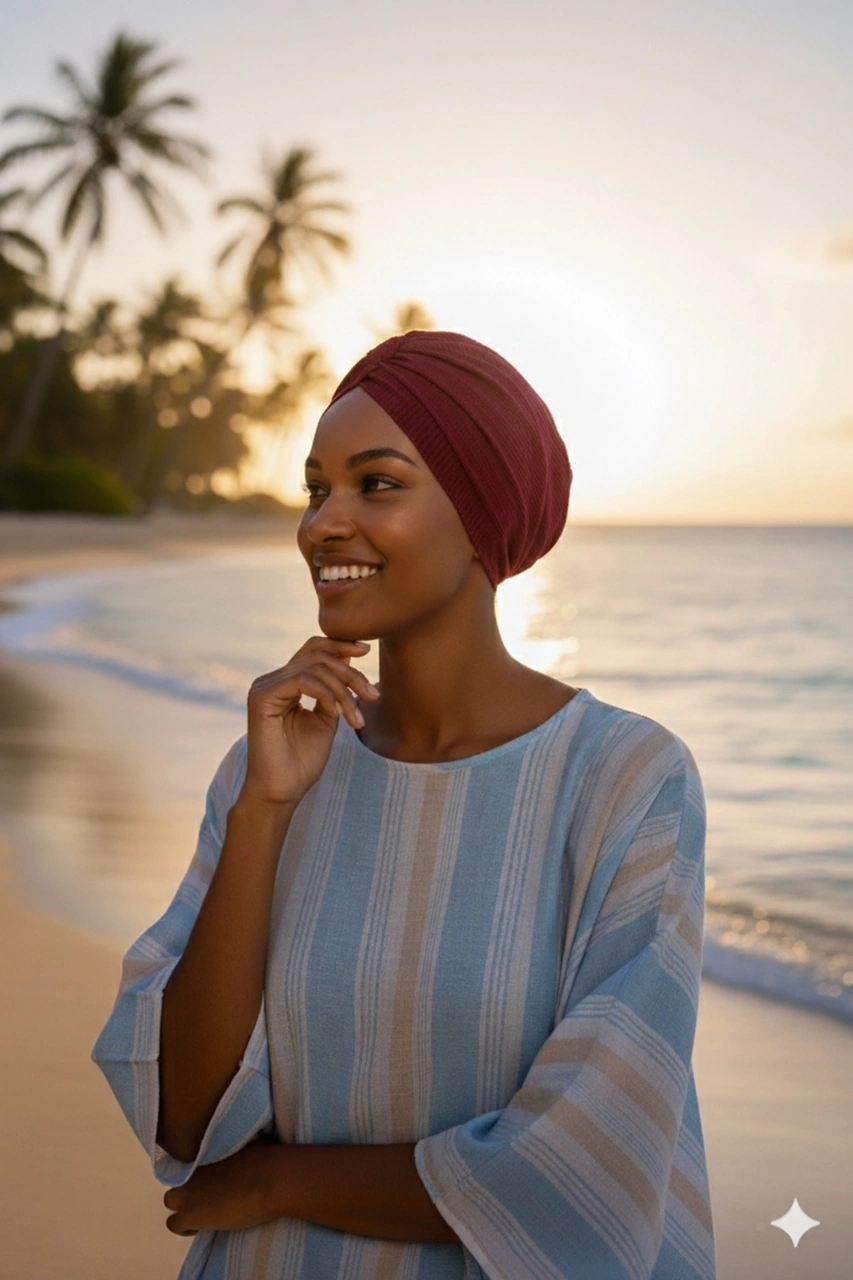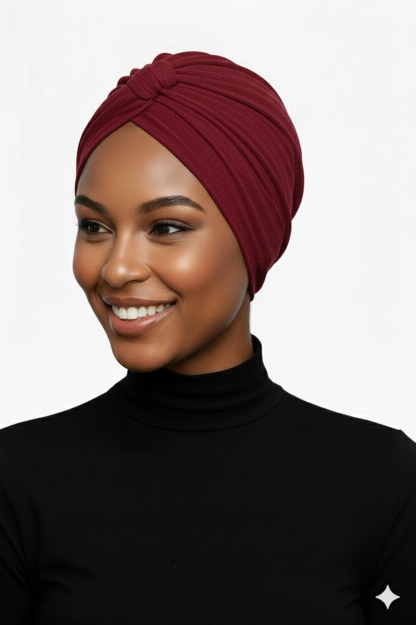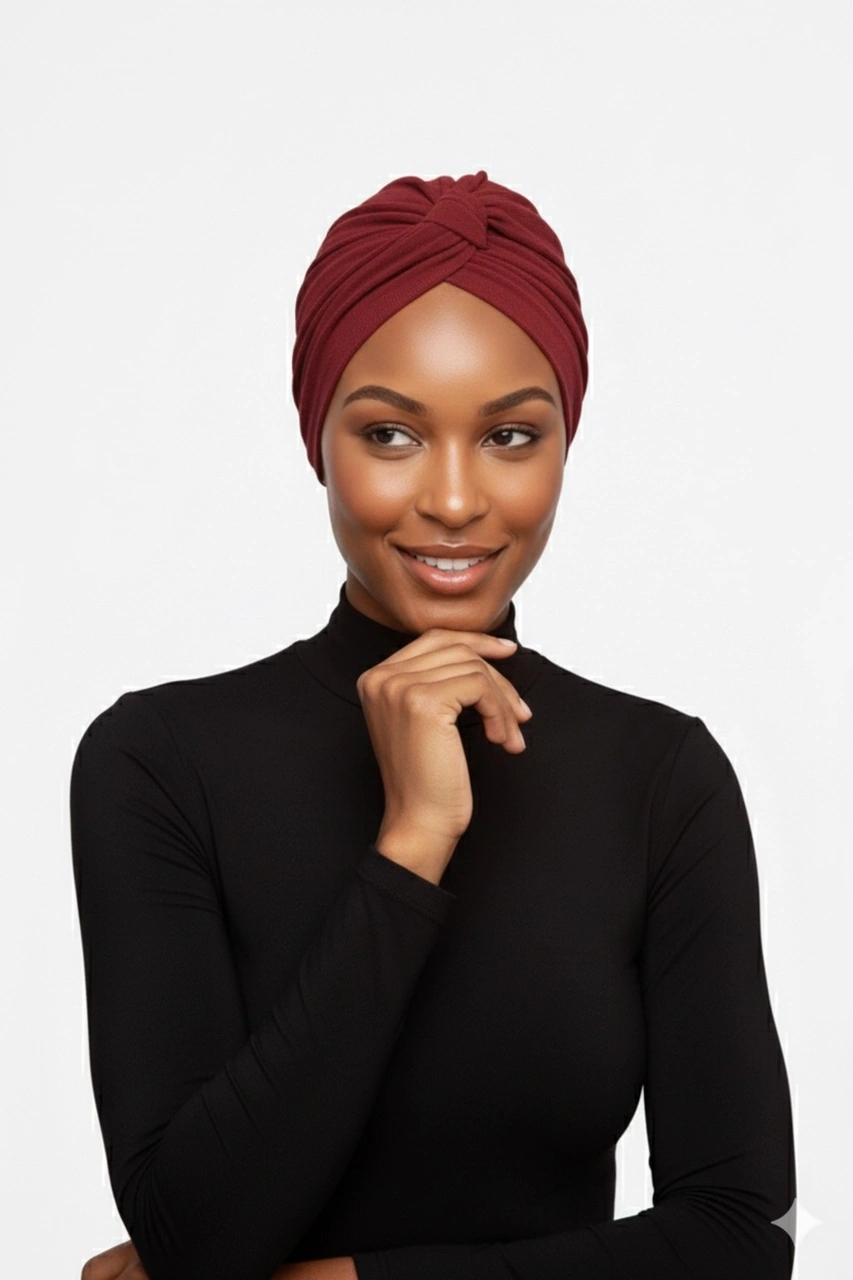 Pamuklu Bantlı Çapraz Astarlı Bordo Hazır Türban Tesettür Havuz Bonesi Bordo