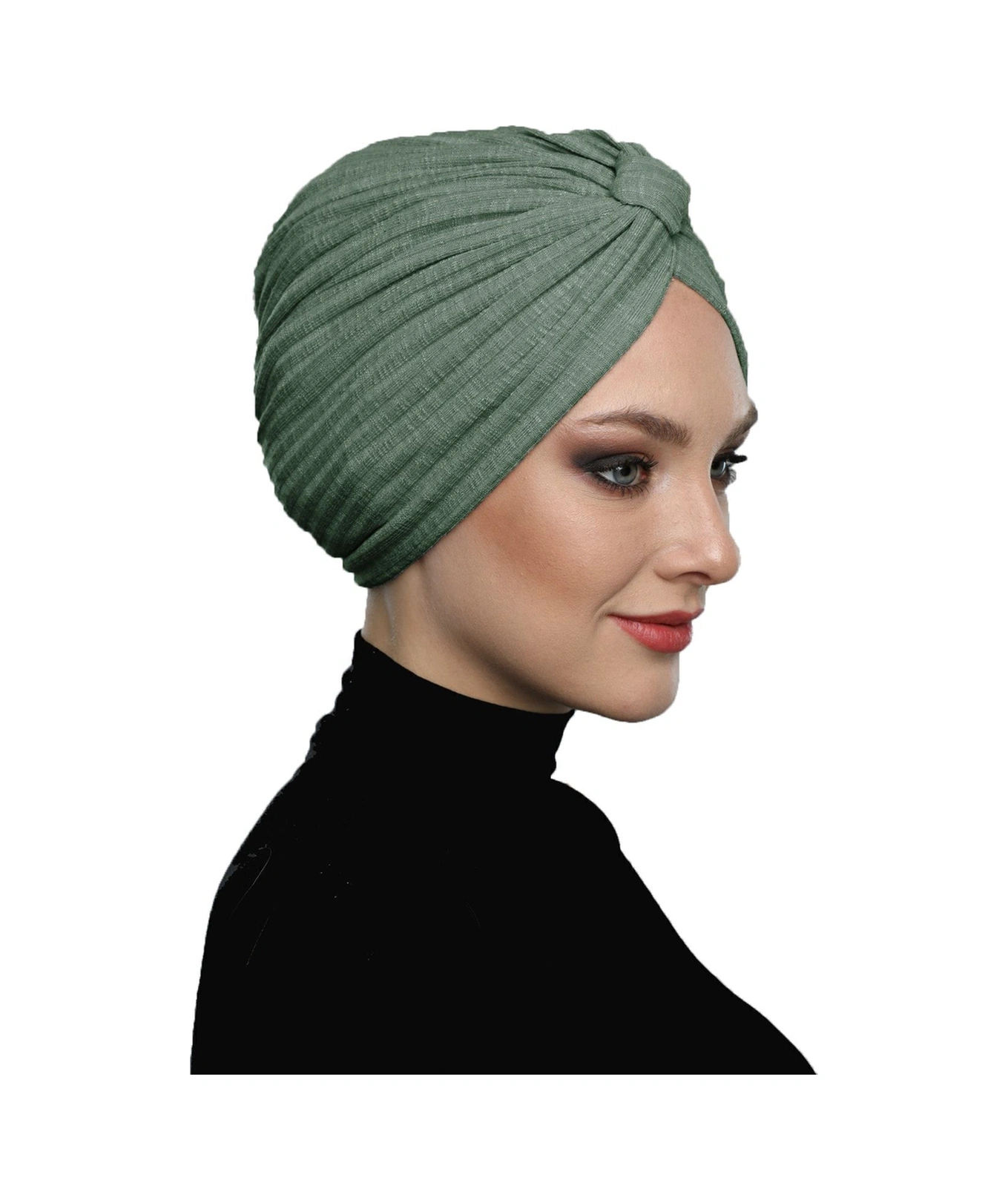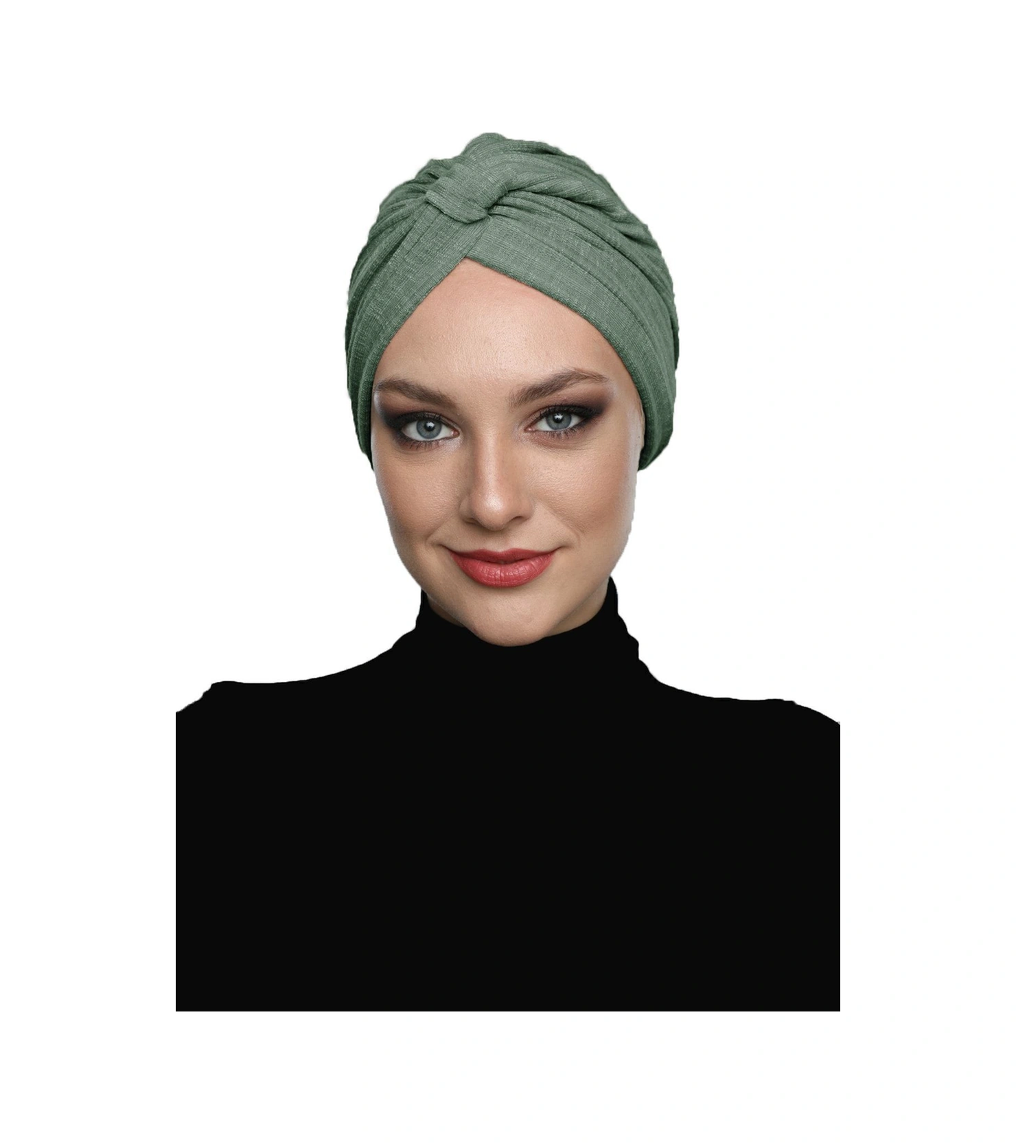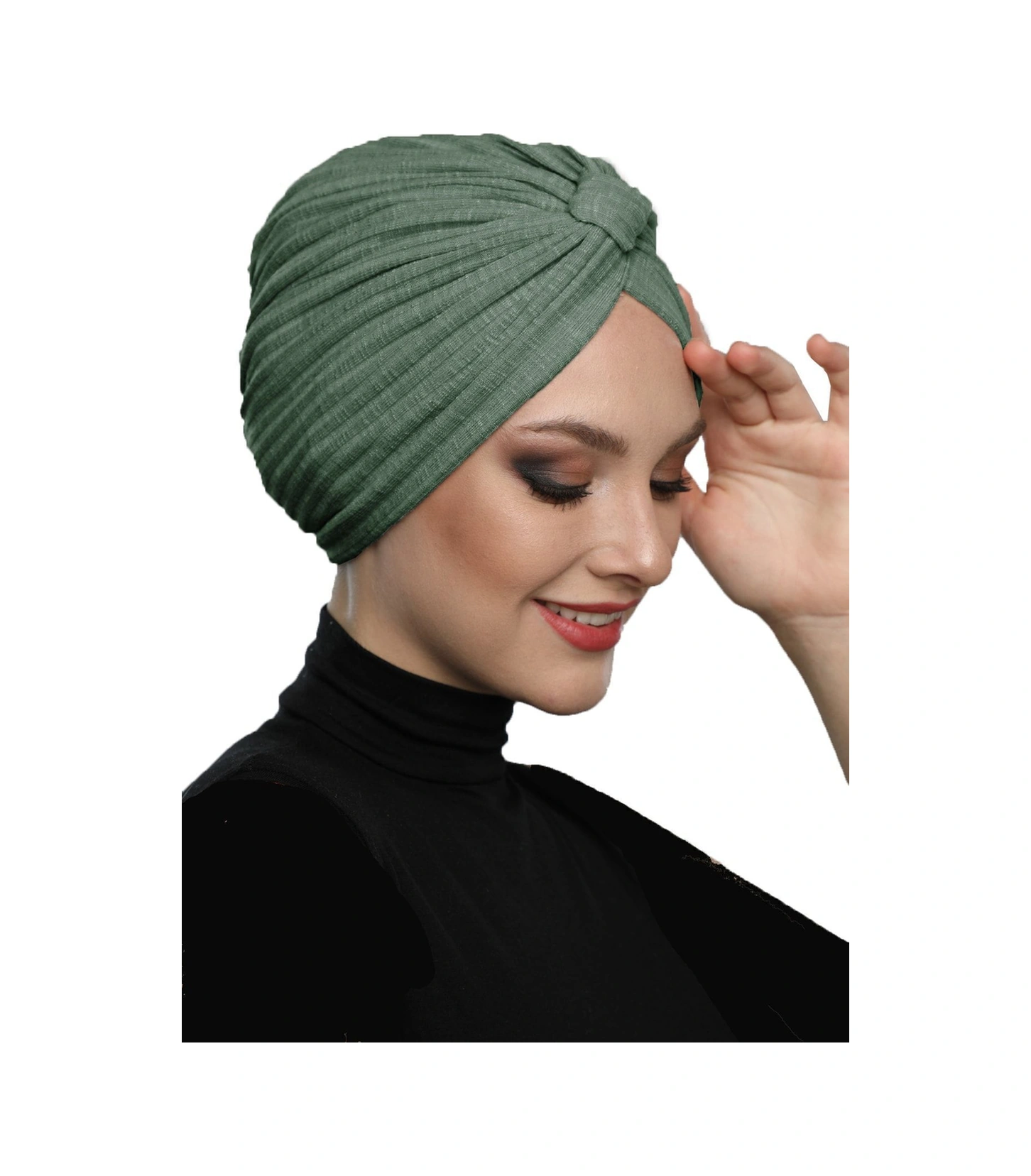 Pamuklu Bantlı Çapraz Astarlı Çam Yeşili Hazır Türban Tesettür Havuz Bonesi Çam Yeşili