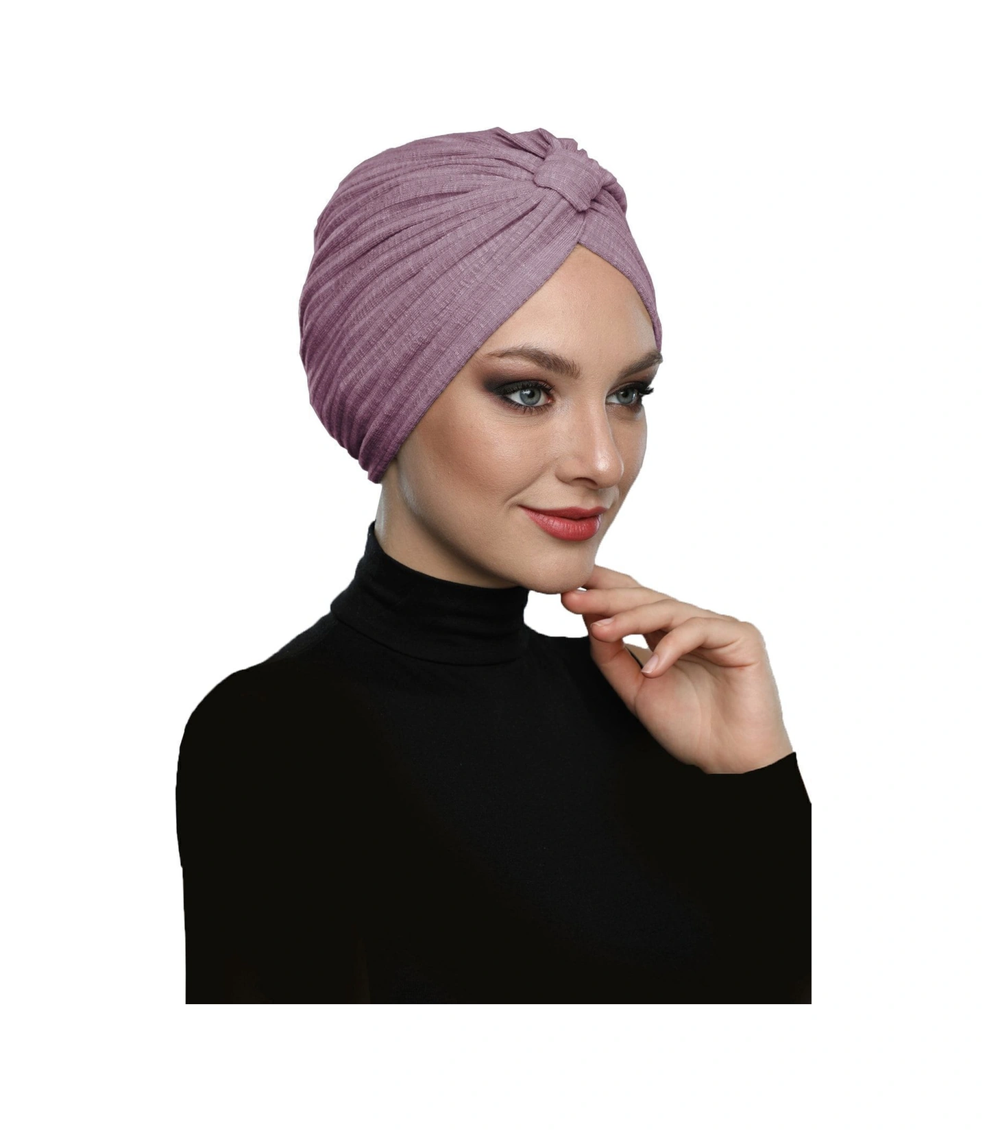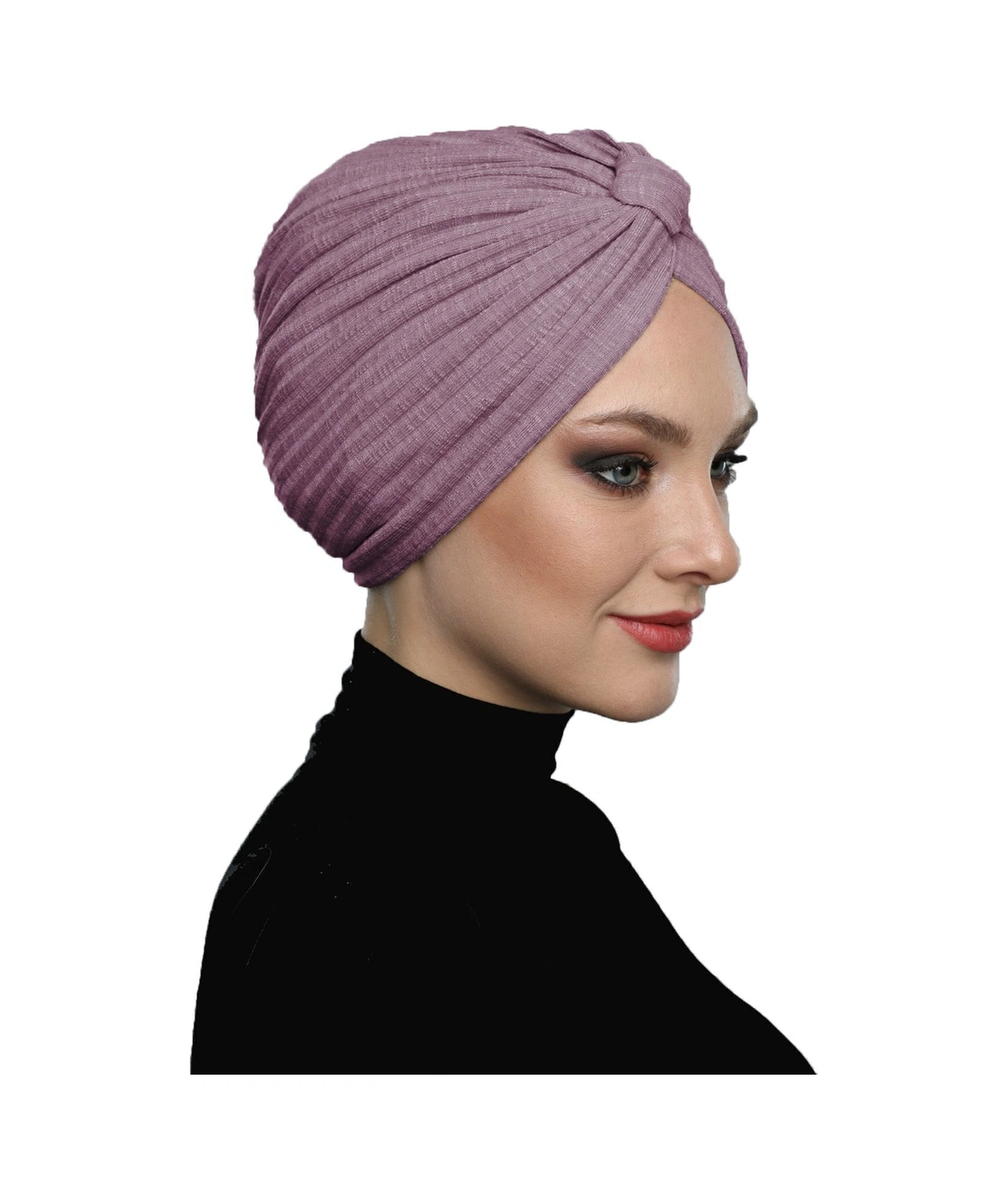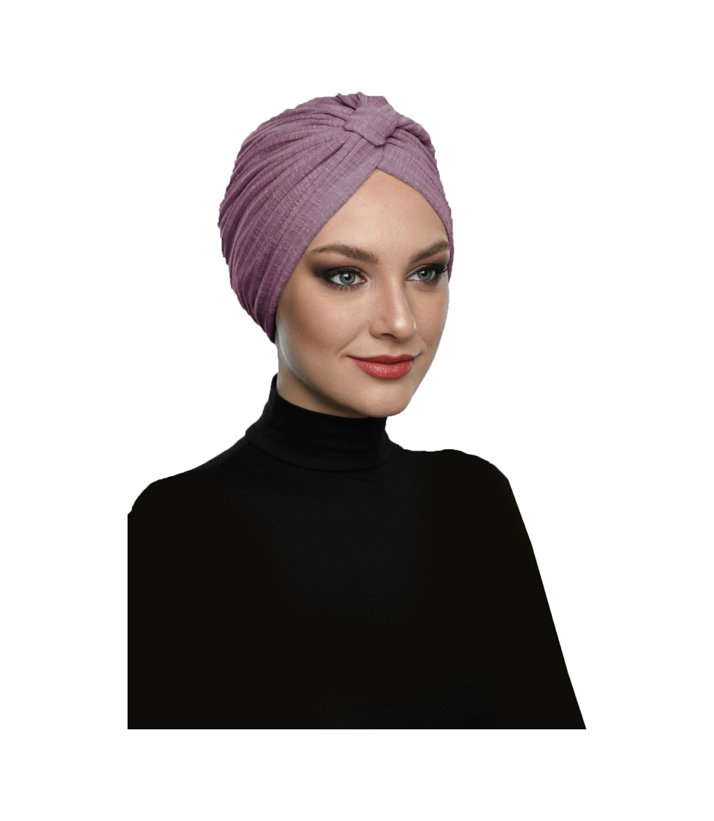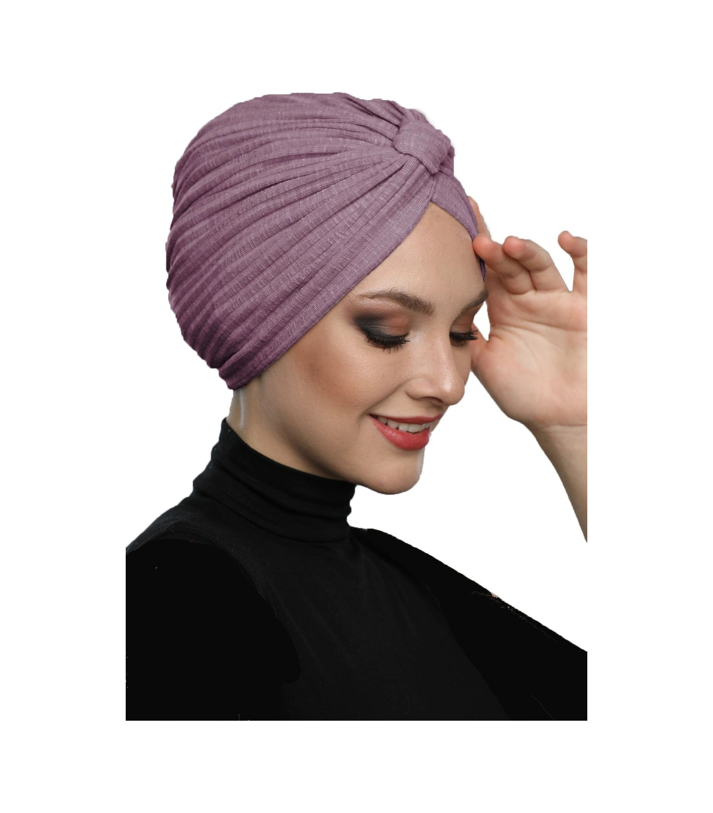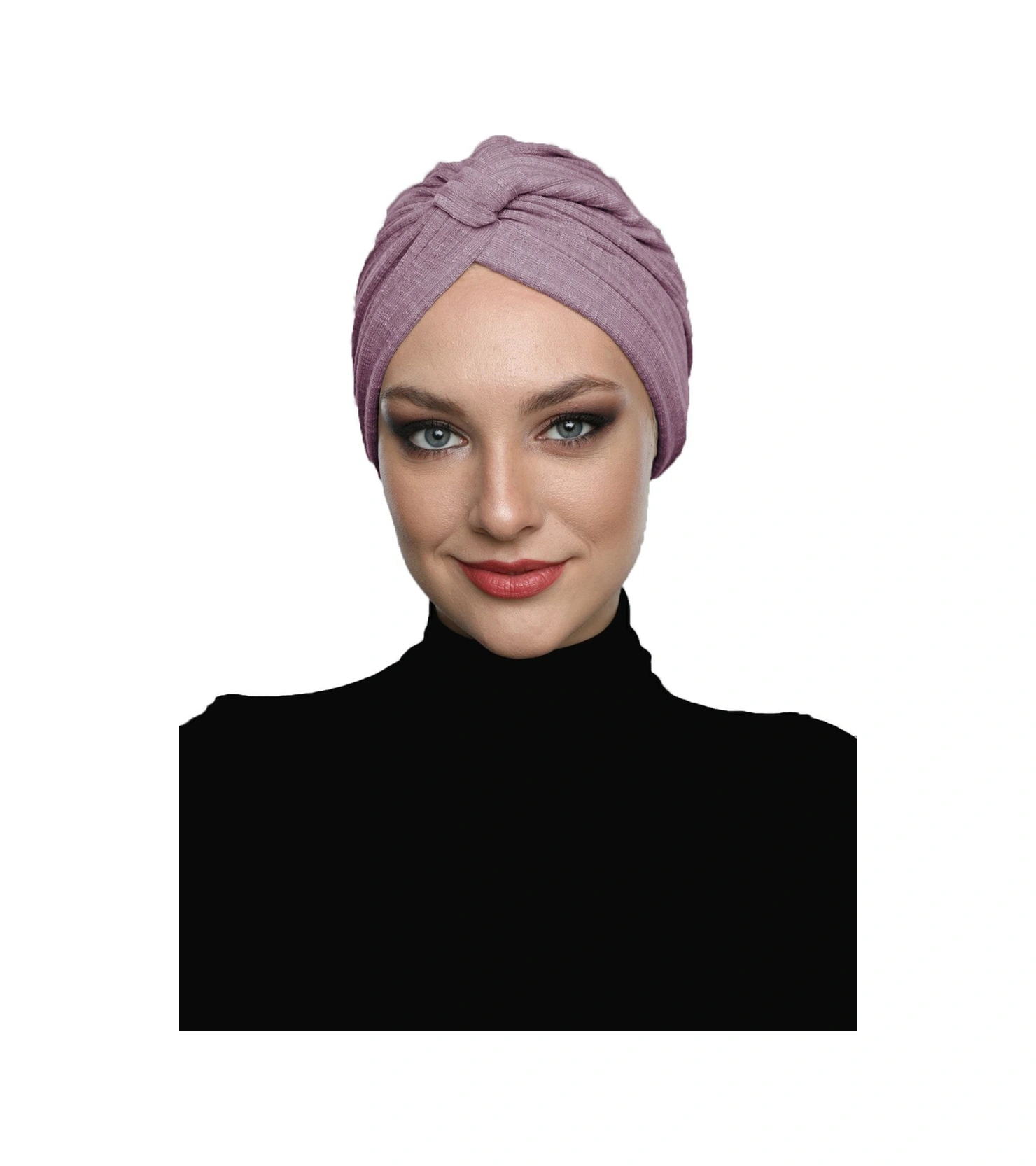 Pamuklu Bantlı Çapraz Astarlı Koyu Leylak Hazır Türban Tesettür Havuz Bonesi Koyu Leylak