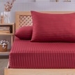 Pamuklu Çizgili Saten Tek Kişilik Lastikli Çarşaf Seti 100x200cm Bordo