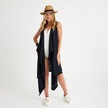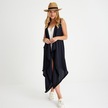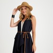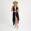 Pamuklu Dokuma Kemerli Püsküllü Plaj Elbisesi - Standart Siyah