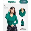 Pamuklu Kaşkorse V Yaka Body Sweatshirt, Fitilli Kumaş Likralı Bluz, Asker Yeşili Badi Çimen Yeşili