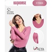 Pamuklu Kaşkorse V Yaka Body Sweatshirt, Fitilli Kumaş Likralı Bluz, Asker Yeşili Badi Gül Kurusu