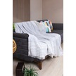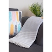Pamuklu Püsküllü Elmas Desenli Koltuk Örtüsü 170x210 Cm Dekoratif Kanepe, Yatak Ve Tv Örtüsü Gri