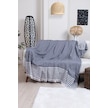 Pamuklu Püsküllü Elmas Desenli Koltuk Örtüsü 170x210 Cm Dekoratif Kanepe, Yatak Ve Tv Örtüsü Siyah