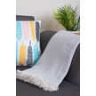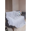 Pamuklu Zikzak Desenli Püsküllü Koltuk Örtüsü 170x210 Cm Dekoratif Ve Çok Amaçlı Gri