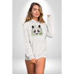Panda Boks Baskılı Gri Kadın Sweatshirt
