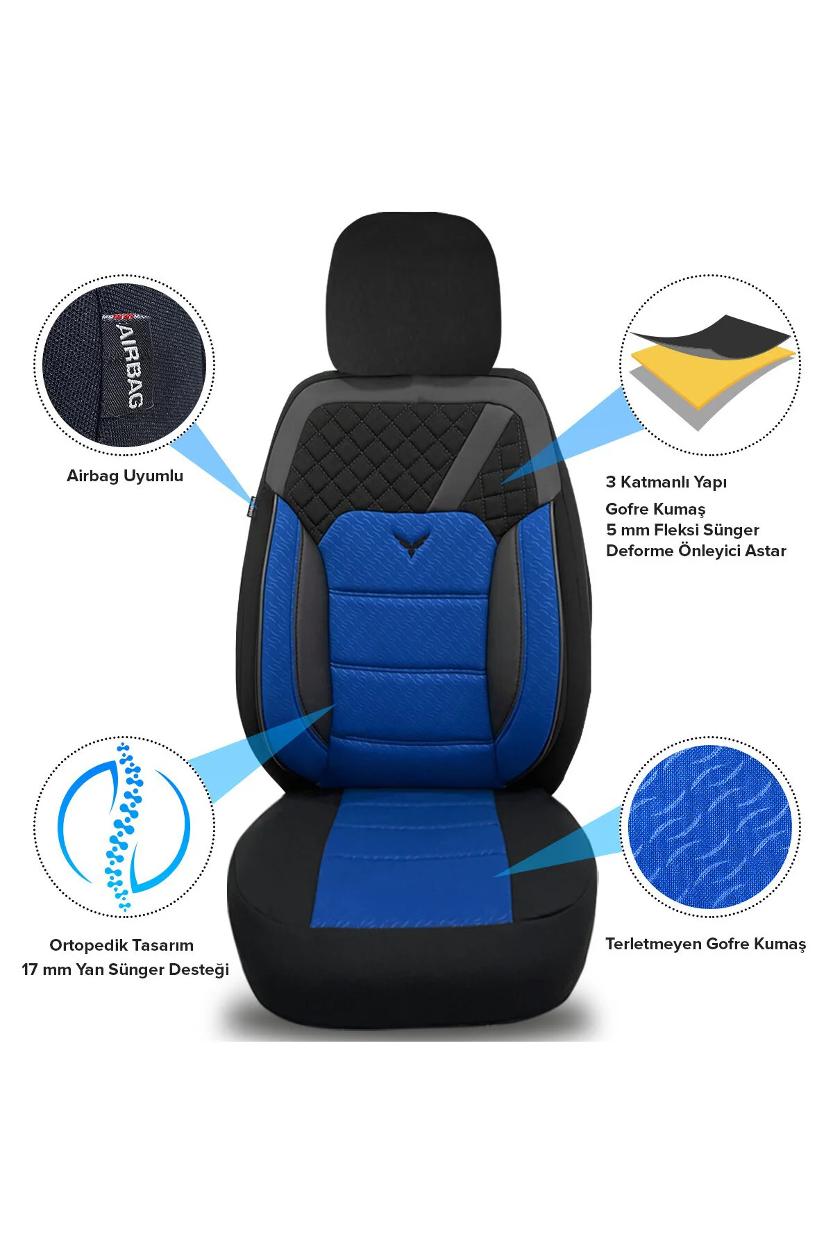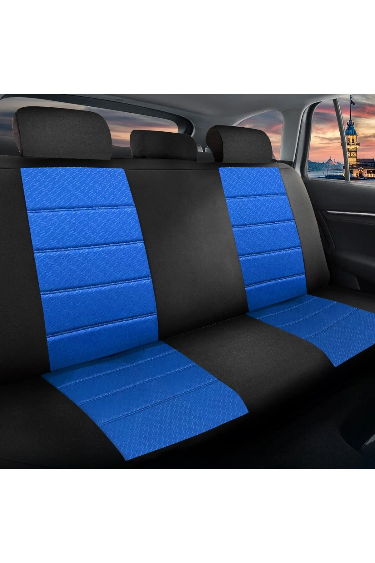Pandami Oto Koltuk Kılıfı, Tam Set, Gofraj / Mavi Mavi