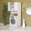Papatya Çamaşır Makinesi Dolabı, Banyo Dolabı, 4 Raflı, Kapaklı, Beyaz Dolap Beyaz