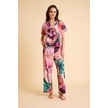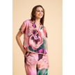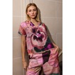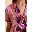 Paradise Sklamen Önden Düğmeli, Kısa Kollu Viskon İpeksi Pijama Takım Desenli
