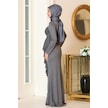 Parıltılı Fırfır Detaylı Zühre Tesettür Abiye Gri