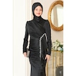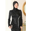 Parıltılı Fırfır Detaylı Zühre Tesettür Abiye Siyah
