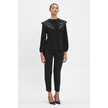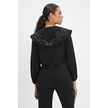 Parıltılı İşlemeli Zarif Yaka Tasarımlı, Balon Kollu Şık Bluz - Özel Günler Ve Günlük Kullanım İçin İdeal Siyah