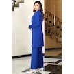 Parla Uzun Ceket Pantolon İkili Tesettür Takım Saks Saks